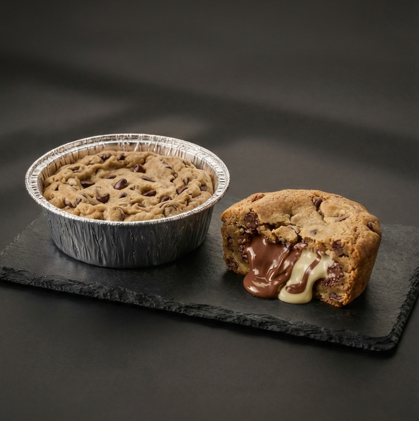 عجينة كوكيز فاخرة محضّرة مسبقًا ومفعمة بكندر والشوكولاتة البلجيكية، جاهزة مباشرةً للخبز لتمنحك تجربة كوكيز طازجة وساخنة بكل سهولة.